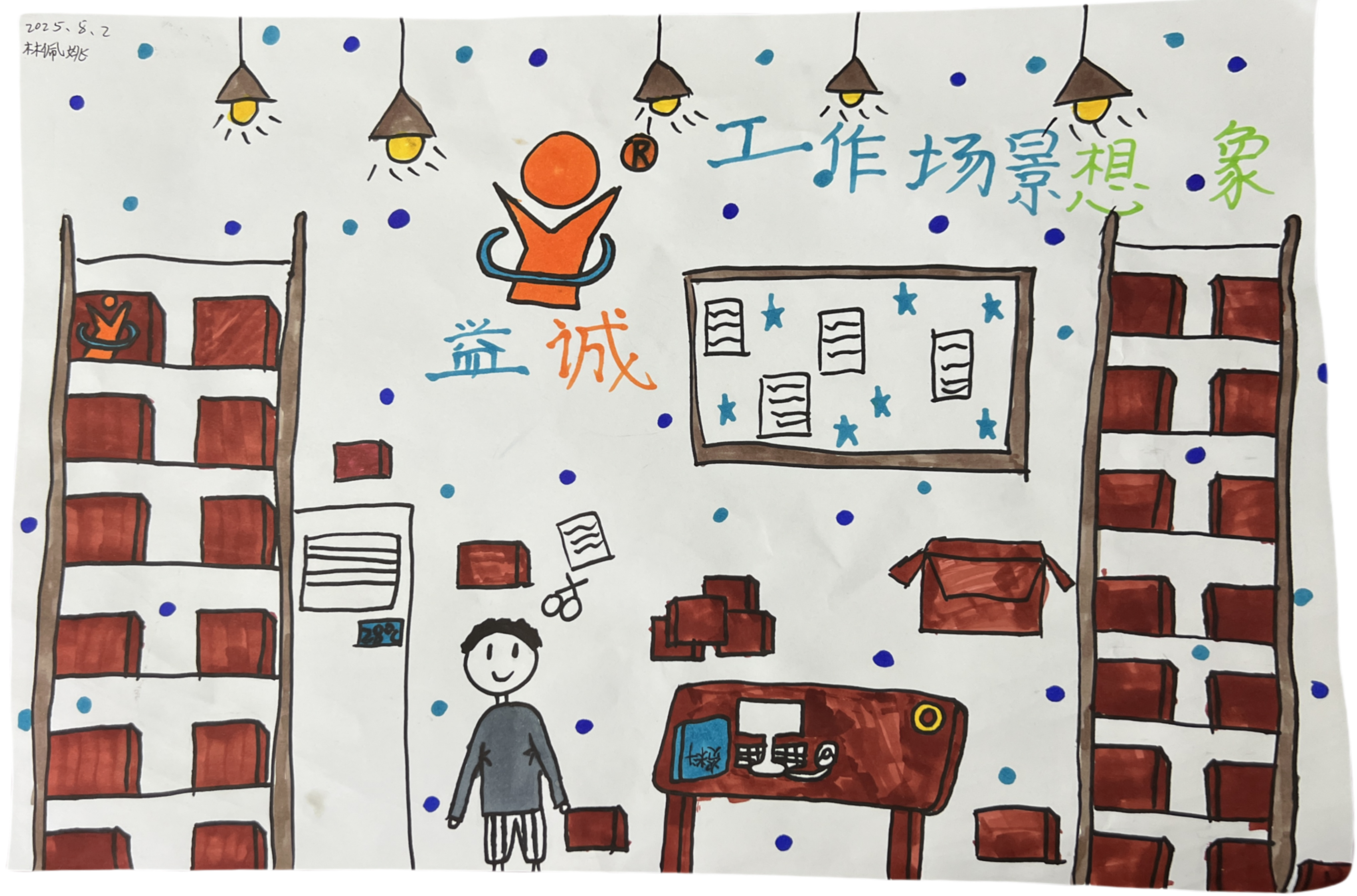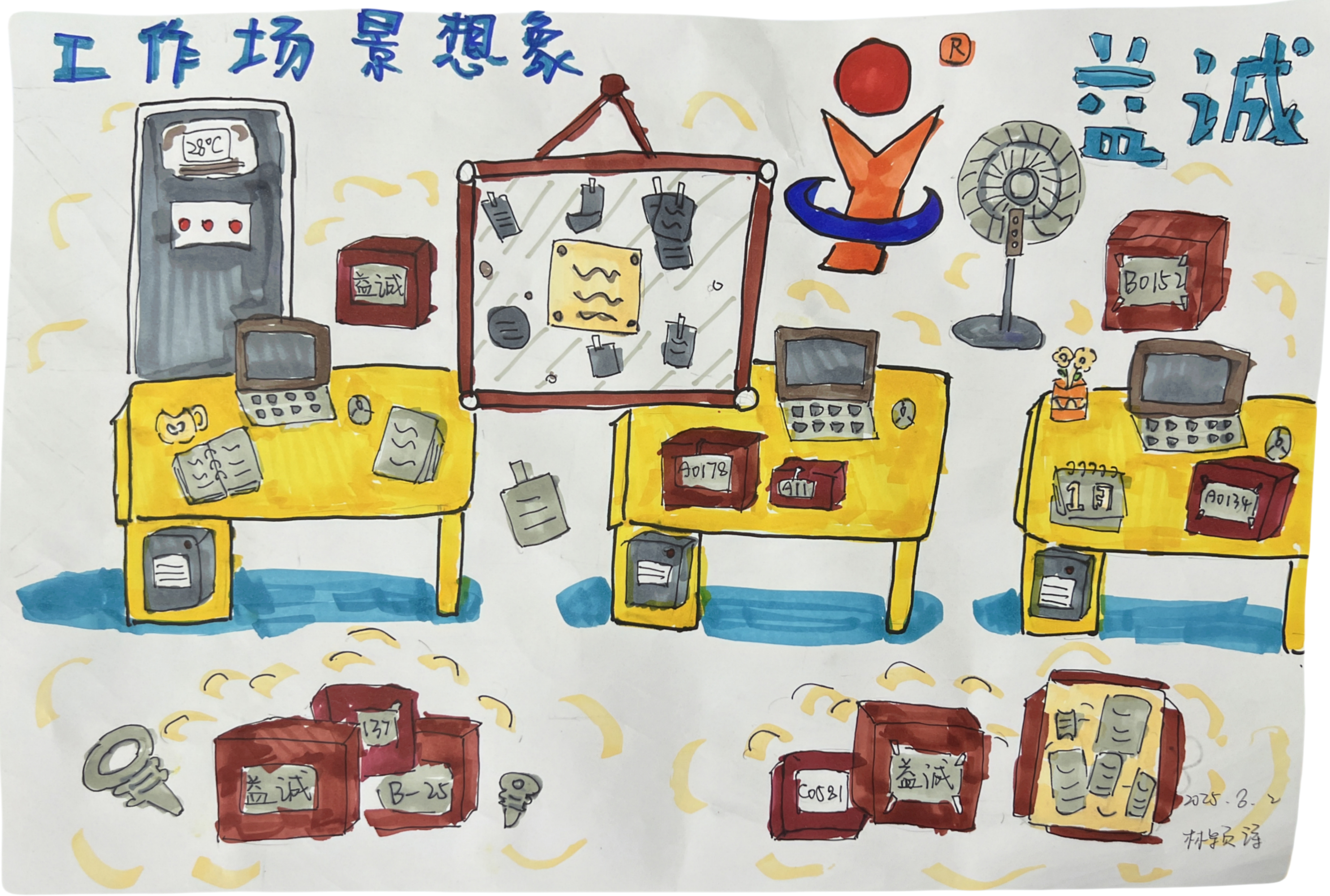 孩子們結(jié)合自己的奇思妙想,對益誠LOGO進行了大膽的創(chuàng)意設計,將益誠LOGO設計成了充滿未來感的科技圖案,原本簡潔的標志在孩子們的筆下變得生動有趣,仿佛被賦予了新的生命。